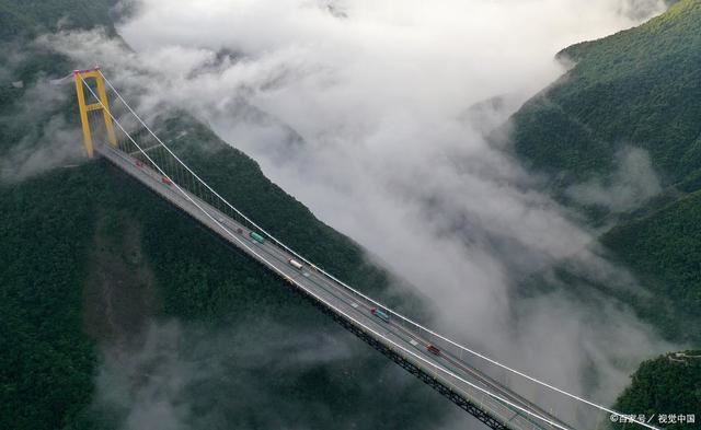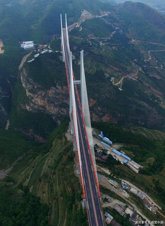 世界第一高橋 ,大橋東塔位于貴州省水城縣都格鎮(zhèn),西塔位于云南省宣威普立,全長(zhǎng)1341.4米,主跨720米,橋塔高269米,橋面距離水面565米,此高度相當(dāng)于差不多200層樓的高,超過(guò)了曾經(jīng)的世界第一高橋湖北四渡河特大橋(496米),2017年得世界排名第一。