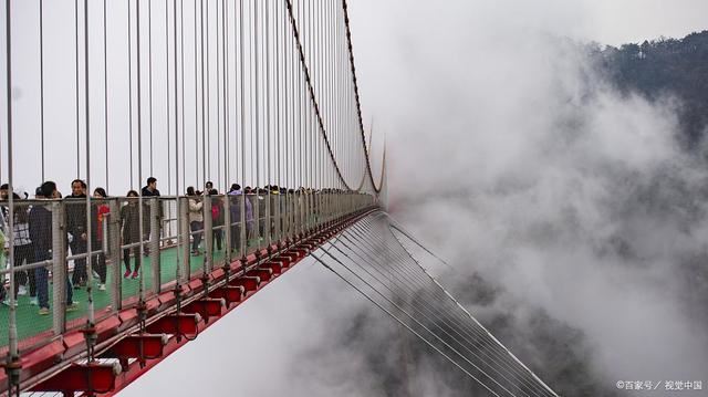 第八名:中國(guó)——石牛寨“好漢橋”,約300米。石牛寨“好漢橋”位于湖南平江石牛寨國(guó)家地質(zhì)公園,全長(zhǎng)300米,垂直高度達(dá)180米,橋面為全透明玻璃材質(zhì)。