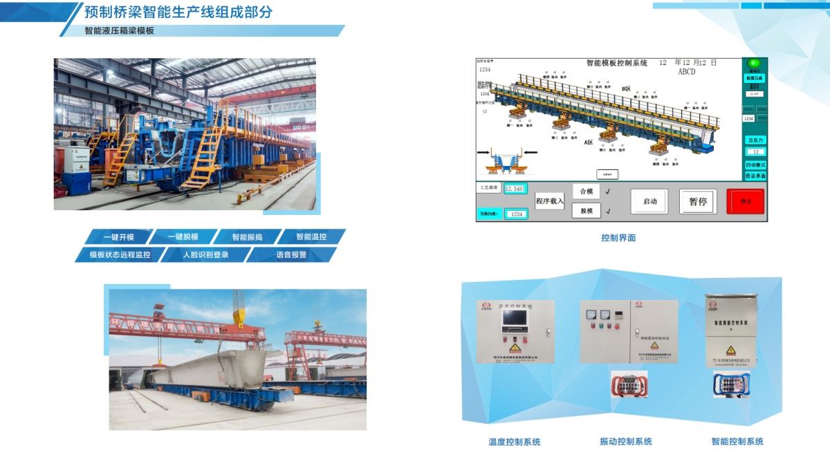 生產(chǎn)過程的自動(dòng)化和智能化:通過自動(dòng)化液壓模板、一鍵開模、一鍵脫模、智能振搗、智能溫控、遠(yuǎn)程監(jiān)控、人臉識(shí)別登錄、語(yǔ)音報(bào)警、無線遙控、智能頂升、智能行走、智能監(jiān)測(cè)等生產(chǎn)過程中各個(gè)階段的自動(dòng)化和智能化實(shí)現(xiàn)生產(chǎn)線的智慧化。