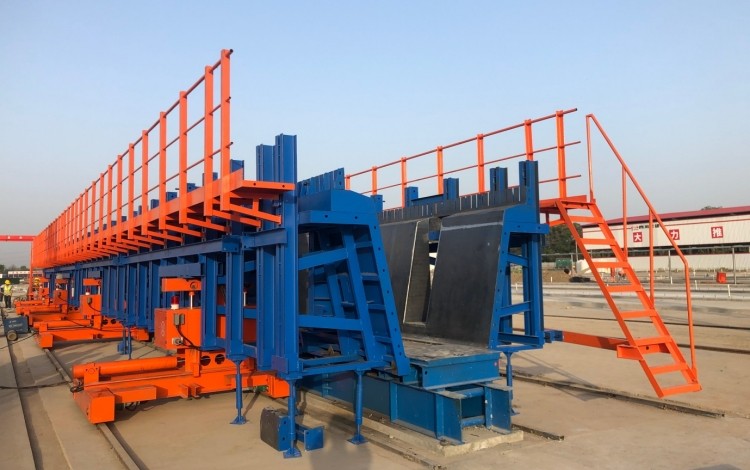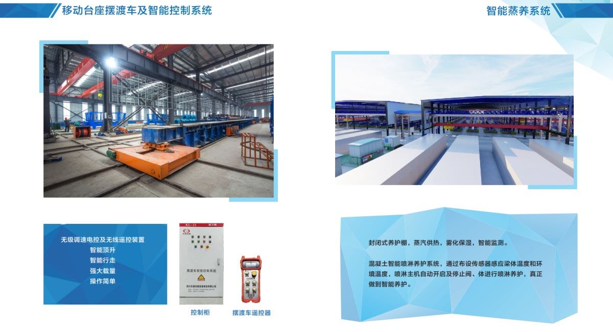 對(duì)生產(chǎn)中的重復(fù)性工作進(jìn)行標(biāo)準(zhǔn)化施工:將傳統(tǒng)的固定式臺(tái)座施工升級(jí)為流水線作業(yè),整個(gè)生產(chǎn)過程形成智能環(huán)形生產(chǎn)線,使勞動(dòng)力和機(jī)械設(shè)備得到充分利用,每條智能環(huán)形生產(chǎn)線可配備4個(gè)移動(dòng)臺(tái)座,平均1天就能出1片梁,極大地提升了生產(chǎn)效率。