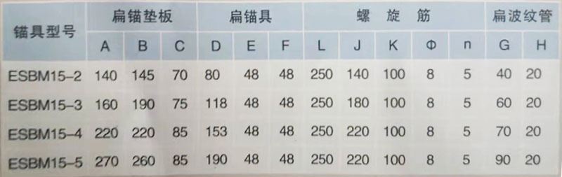 ▼BM扁形錨固體系參數(shù) 單位:mm