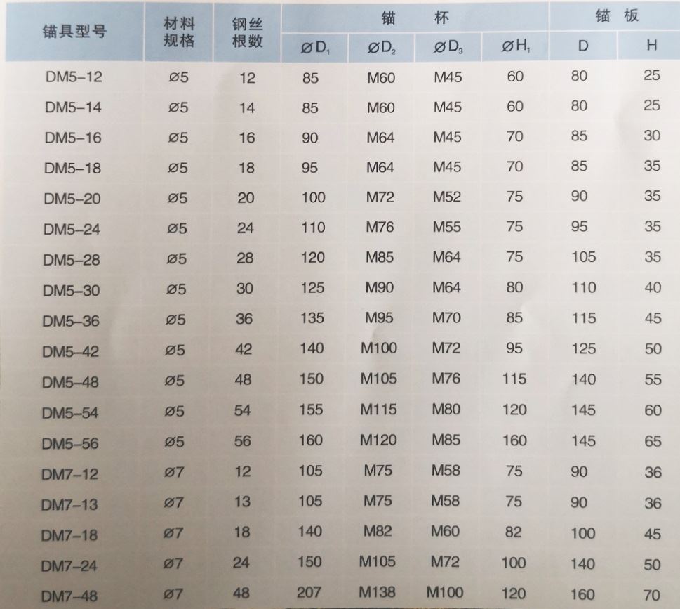DM型鋼絲束鐓頭錨具系列:錨固標(biāo)準(zhǔn)強(qiáng)度為1470、1570MPa及其以上的? 5、? 7mm高強(qiáng)鋼絲束。主要用于后張法預(yù)應(yīng)力混凝土結(jié)構(gòu)及構(gòu)件中。 錨板用于固定端。